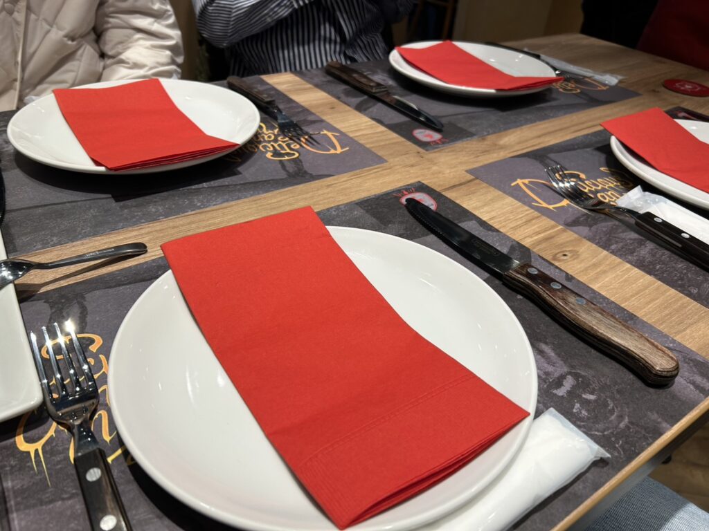 テーブルまでスタッフさんが来てくれて、目の前でカットしてくれるスタイルなので、焼きたて・ジューシーなお肉を一番おいしい状態で楽しめます。